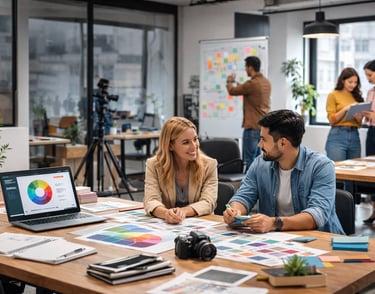 Our team is made up of designers, marketers, strategists, and visual storytellers who collaborate closely to deliver integrated solutions under one roof. From brand identity and digital presence to content, printing, and visual production, we ensure every element of your brand speaks the same language.